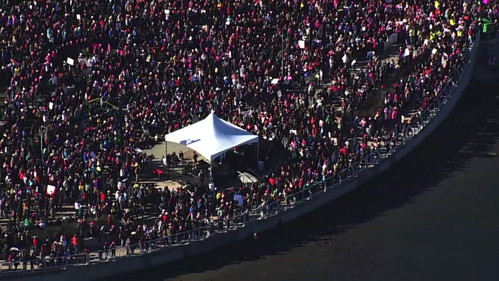 OAKLAND, Calif. (KGO) -- The Oakland Police Department estimated that up to 50,000 people marched through downtown streets Saturday, on the first anniversary of the National Women's March.