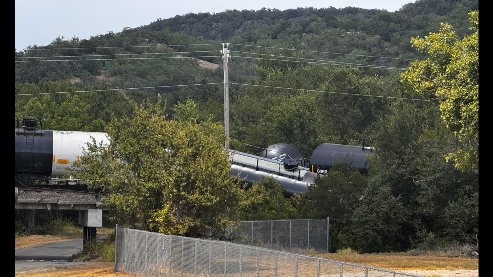 Palo Pinto County emergency services said no cars are leaking contents and that crews are on scene, mitigating the damage and hazards.