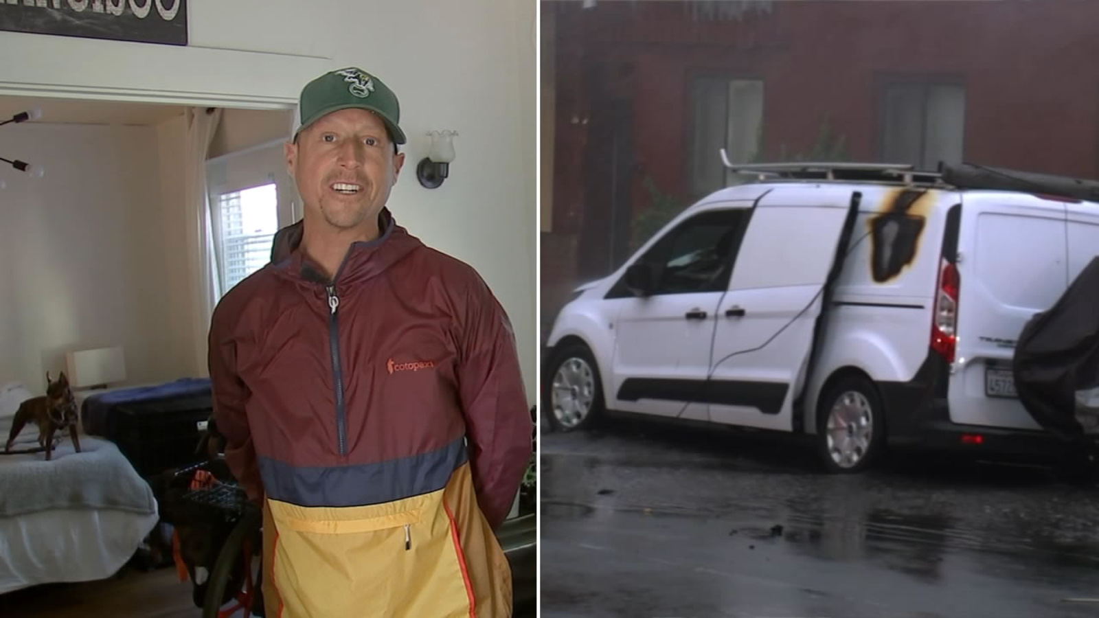 Six showed ABC7 News the Airbnb in Emeryville where he and his three dogs are now staying after the fire damaged the van where they lived.
