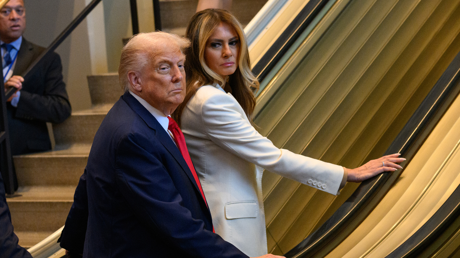 As first lady Melania Trump and the president stepped onto the escalator ahead of his speech on Tuesday morning, it stopped moving, prompting both of them to stop in their tracks.