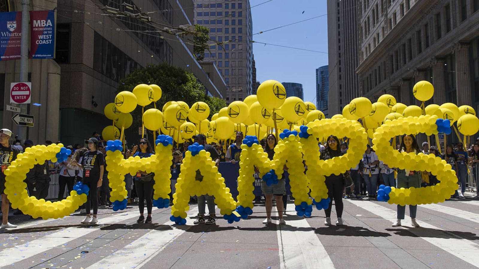 People cheer the Golden State Warriors during their NBA championship parade in San Francisco, Monday, June 20, 2022.