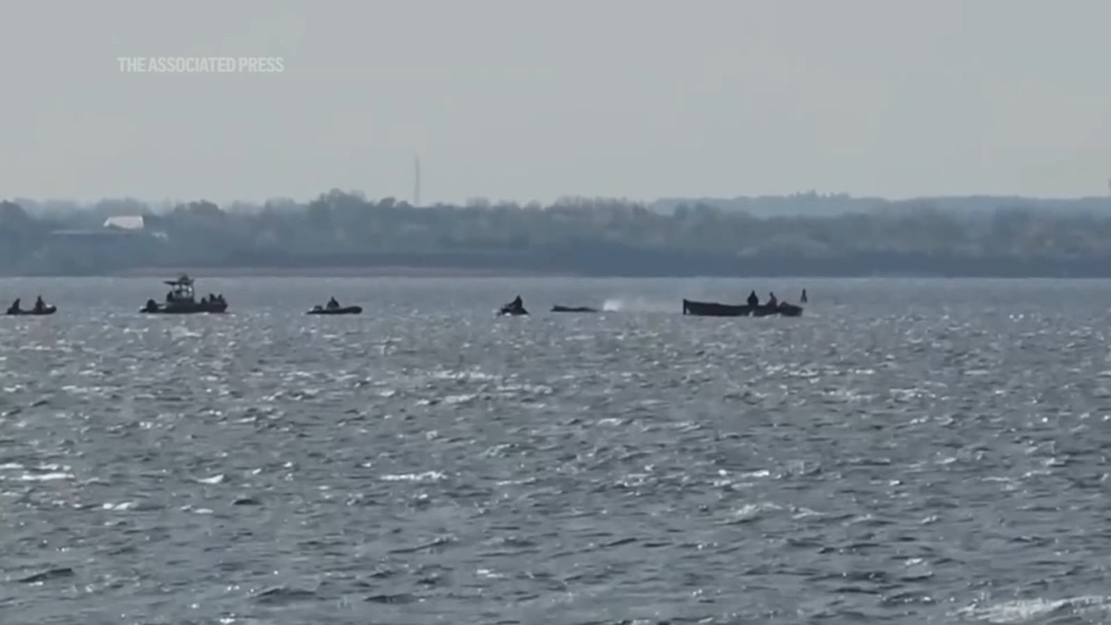 Experts then came up with a sophisticated plan to use air cushions to lift the animal onto a tarp, which would have been secured to two pontoons and attached to a tugboat. State officials approved the private initiative, but the whale started swimming again Monday as the tide rose. Boats attempted to guide the mammal toward the right path, though some have lost all hope.