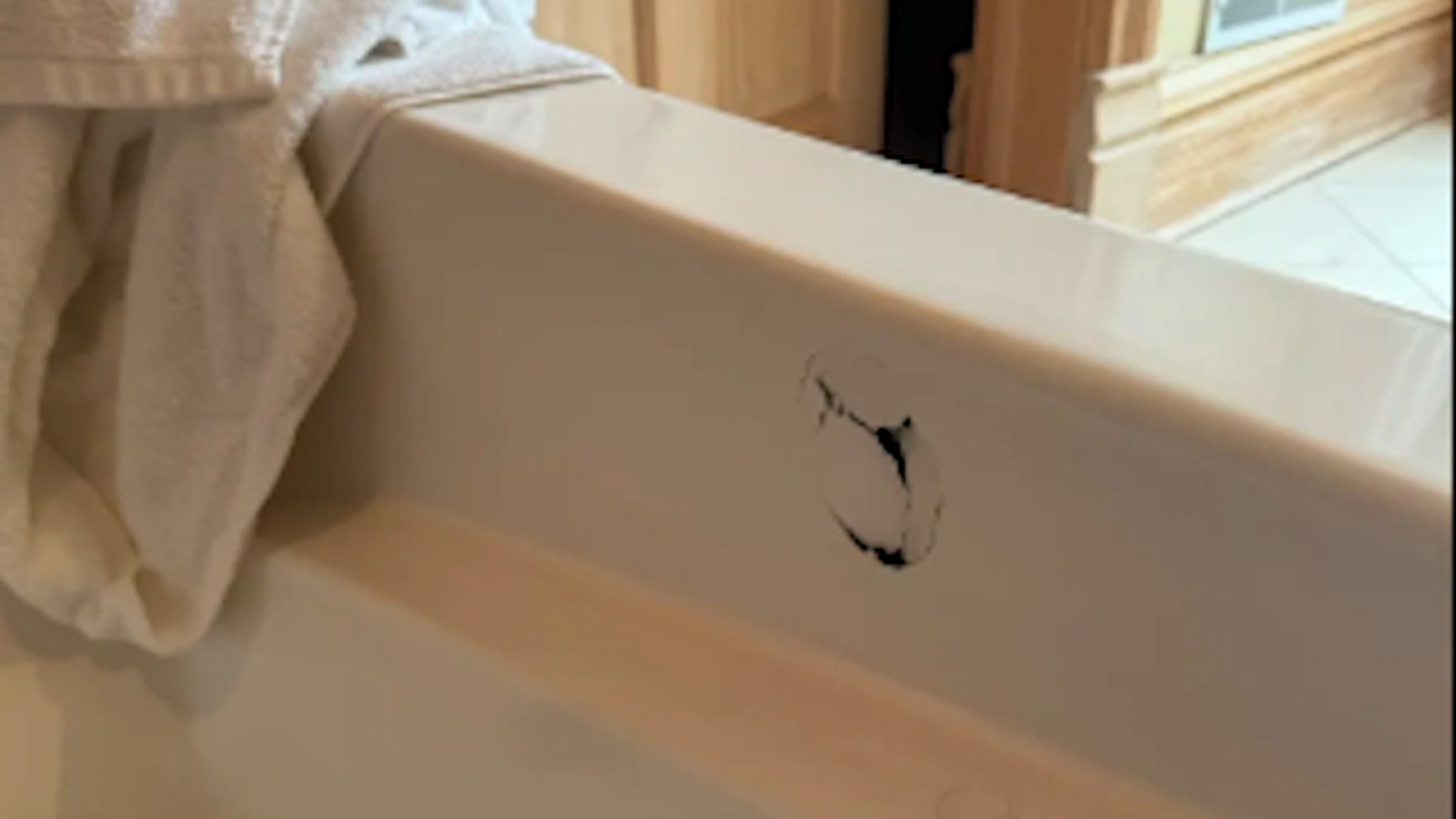 The damage in question was a large hole inside of the bathtub. Peto said she was shocked.