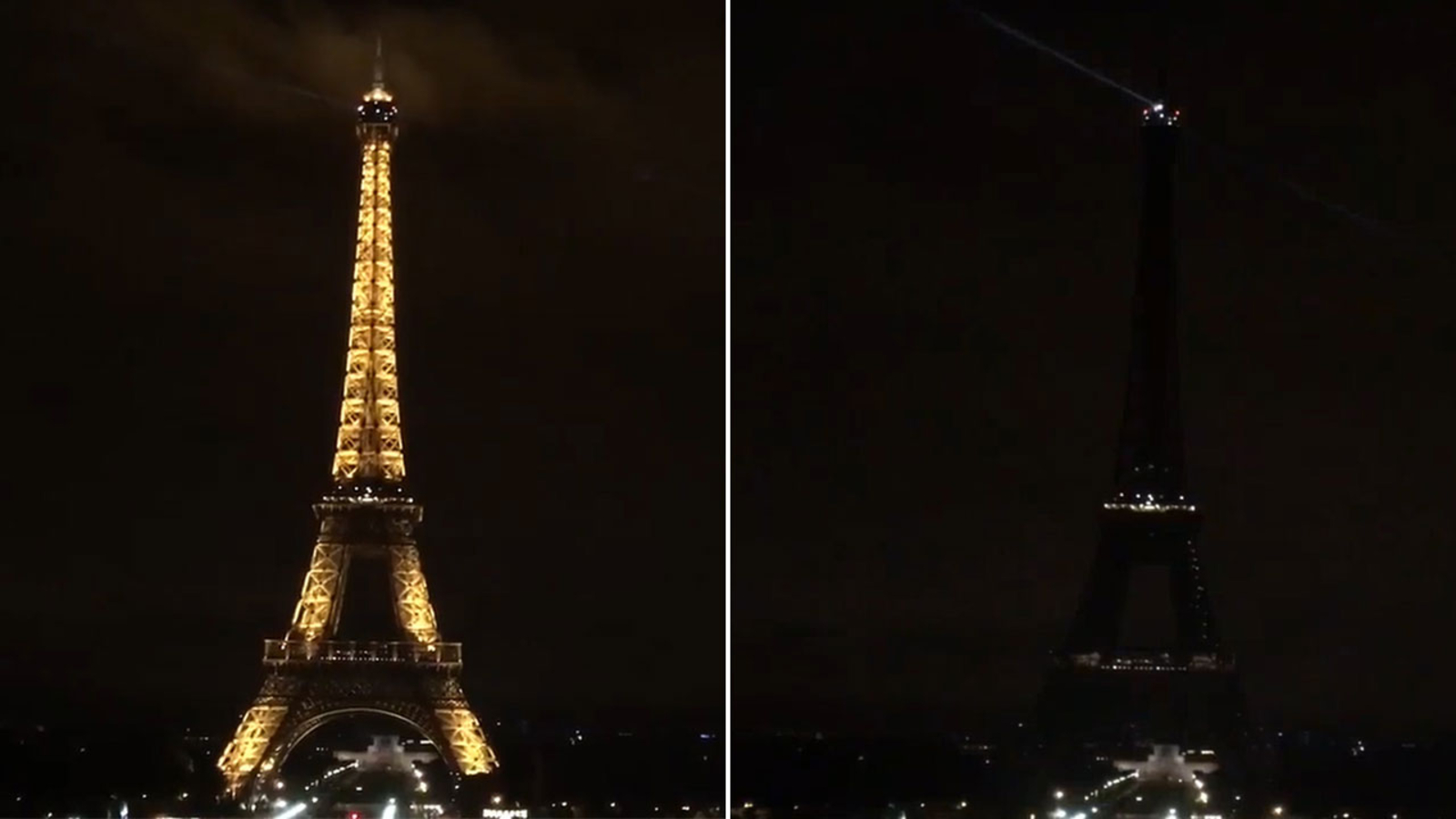 The Eiffel Tower went dark, One World Trade lit up in red and yellow, and other landmarks displayed the Spanish flag in solidarity with the victims.