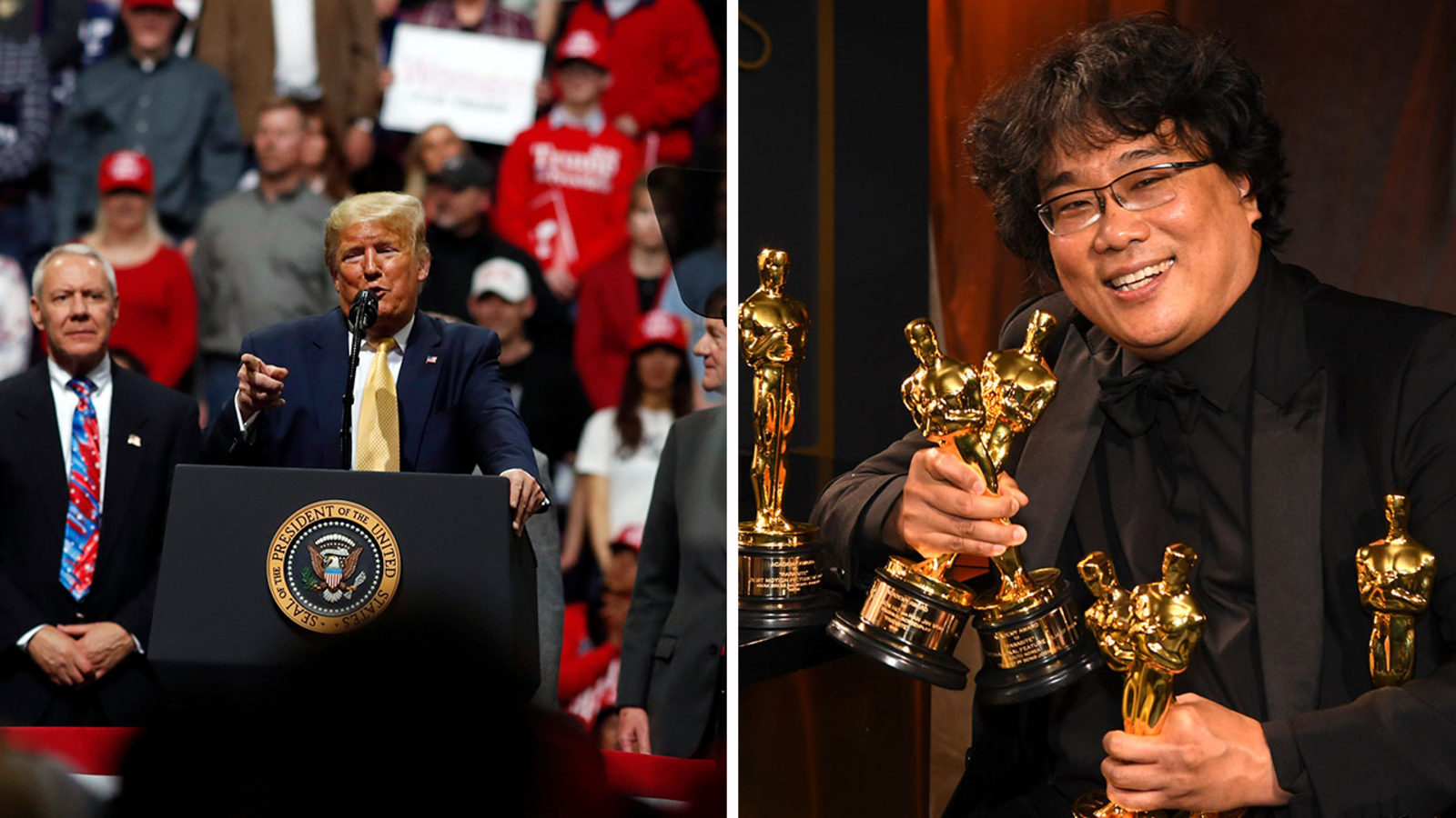 Trump started talking about the awards show during the rally, complaining that "Parasite" was named Best Picture, becoming the first non-English-language film to get the top honor.