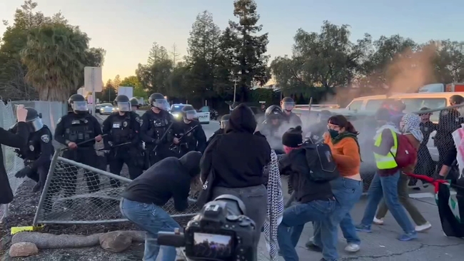 VIDEO: Projectiles fired at pro-Palestinian protesters after they tear down Fremont Tesla factory fence