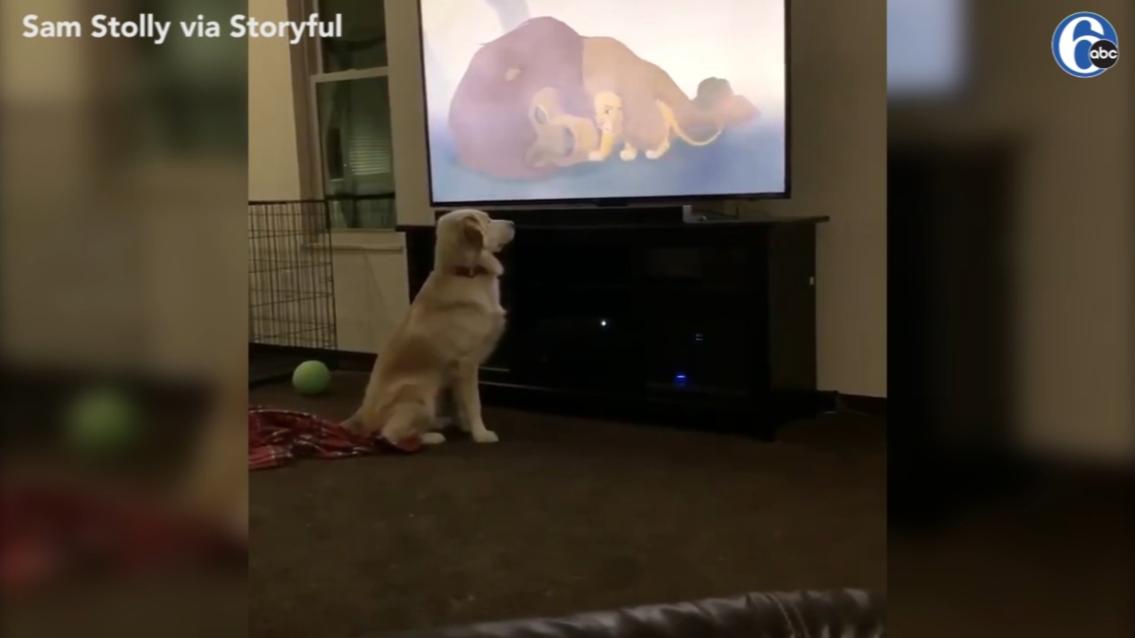 Dayton, Ohio -- An adorable golden retriever may just be scarred for life after watching Mufasa's death scene in 'The Lion King' for the first time.