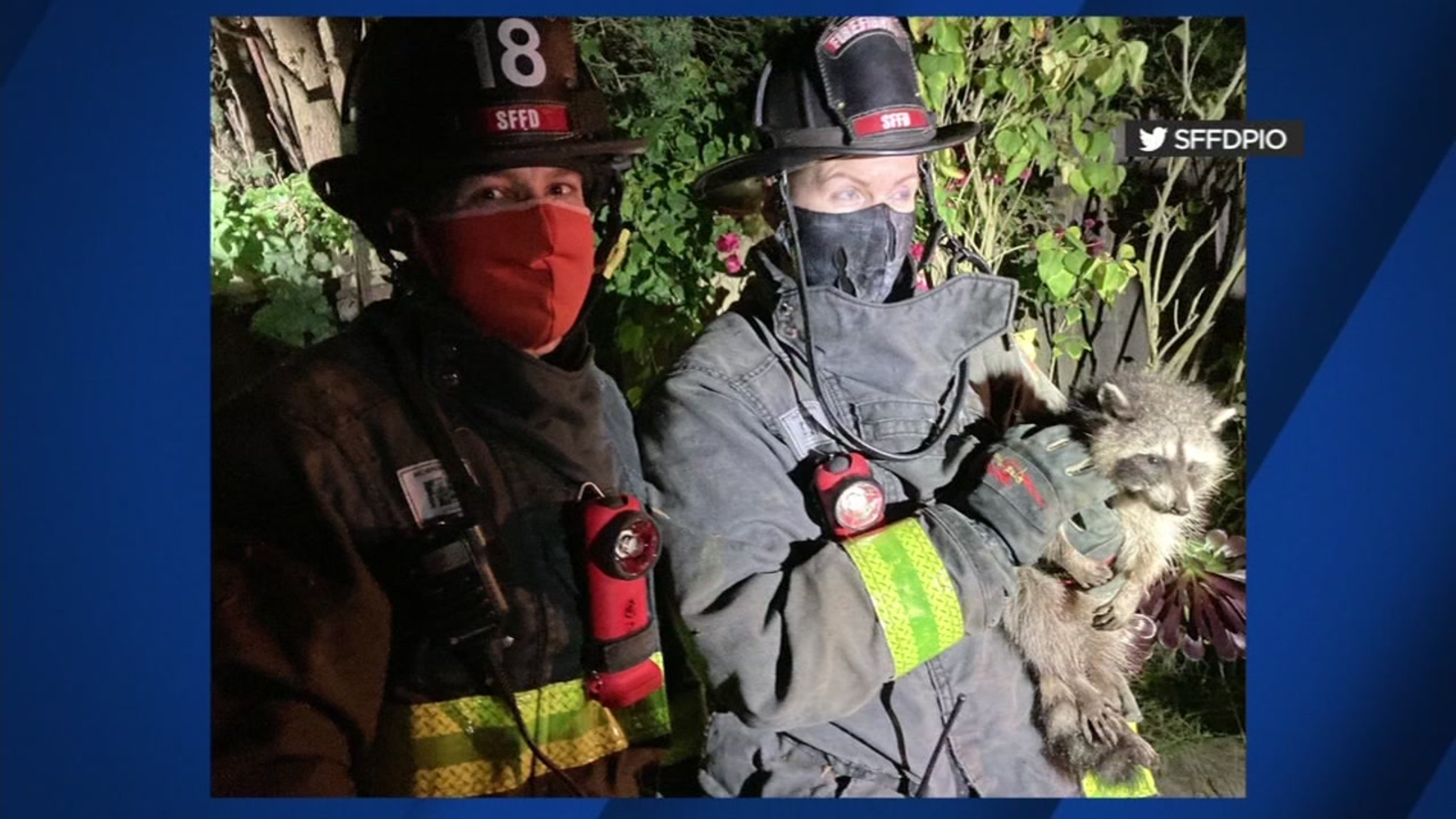 Neighbors called for help after hearing loud cries at 15th Avenue and Santiago Street, in the Sunset District. San Francisco firefighters were summoned after San Francisco Animal Care and Control was unable to free the raccoon, which had wedged itself in between a tight V-split in some tree branches, the department said.