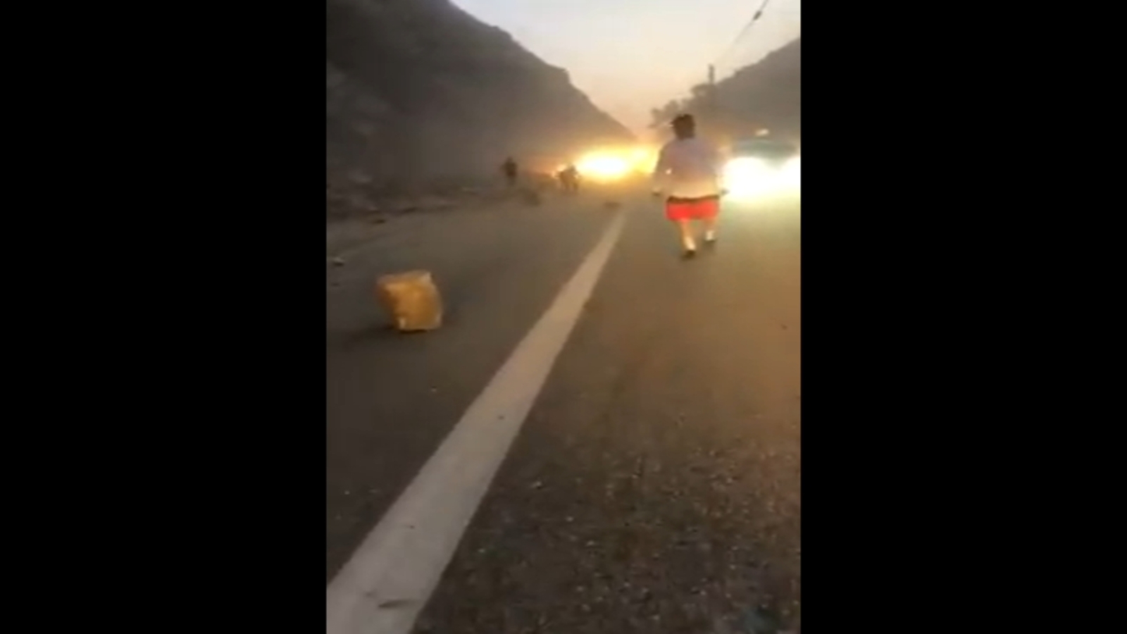 The roadway had endured major damage, causing havoc for residents fleeing the area following the quake.