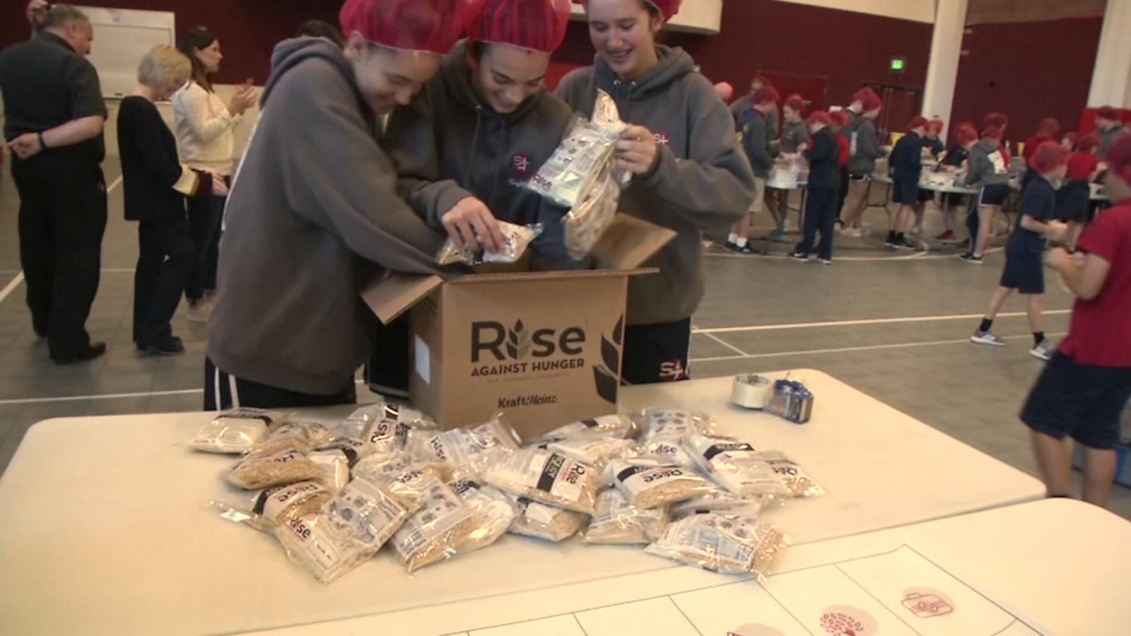 The St. Theresa students raised more than $8,000 for the project and filled 11,000 food packets in just a few hours.