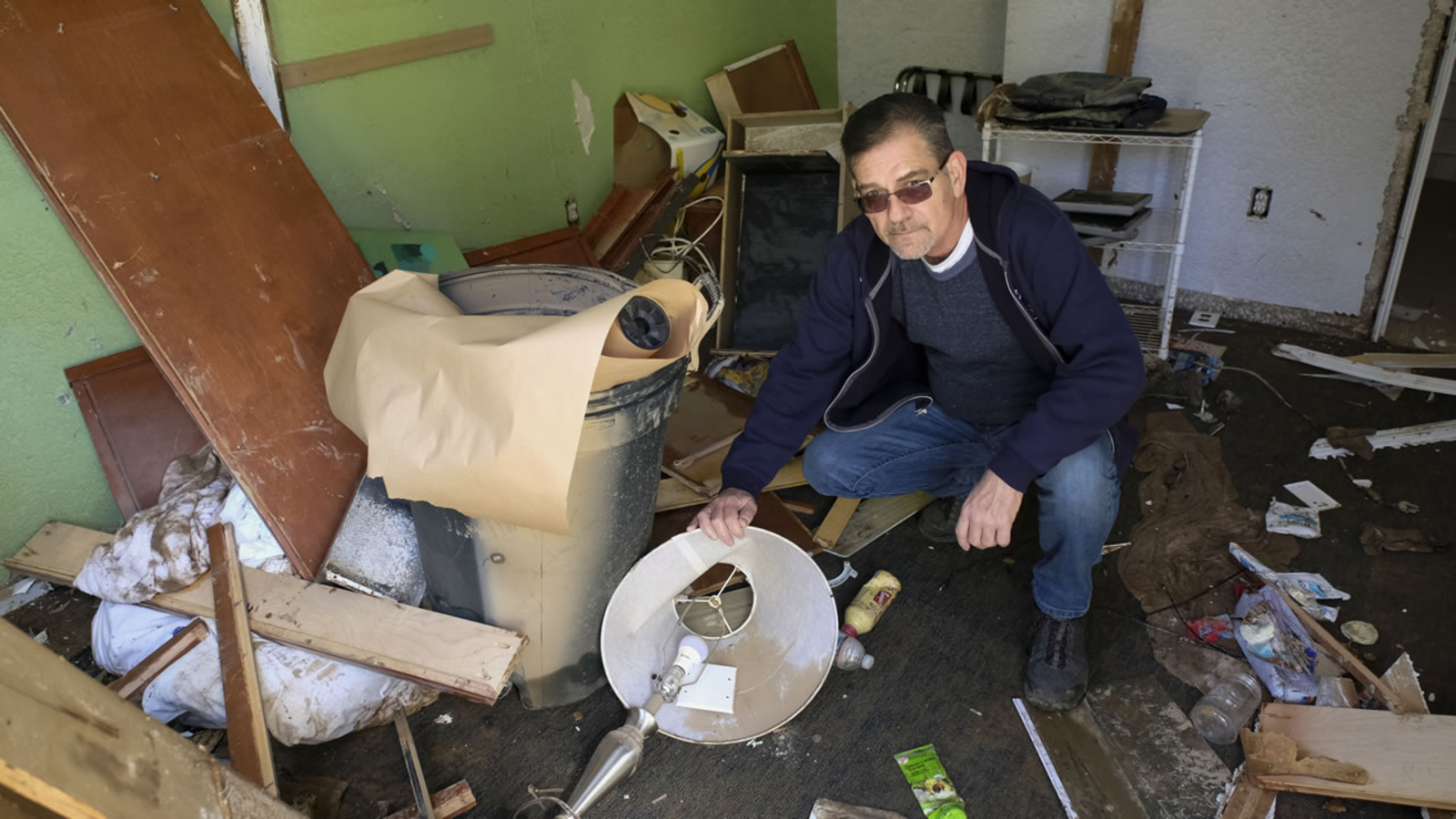 Jeff Bridges owns the R3 Hotel. Before getting his flood garbage into bins, he still needs to remove it from the 19 of 23 rooms ruined by high water.