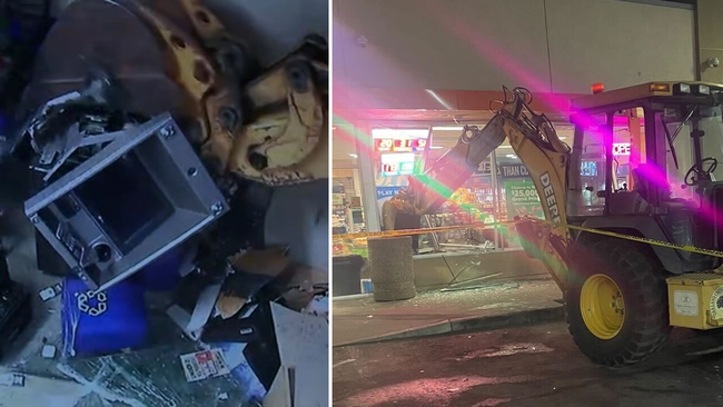 EXCLUSIVE: Video shows thieves using backhoe to break into Oakland store with clerk inside