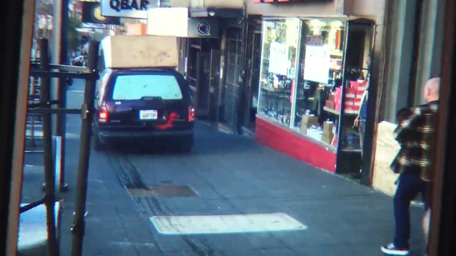 The driver of the van jumped the curb near Market and Castro and drove erratically on the sidewalk, hitting Rossi's Deli.