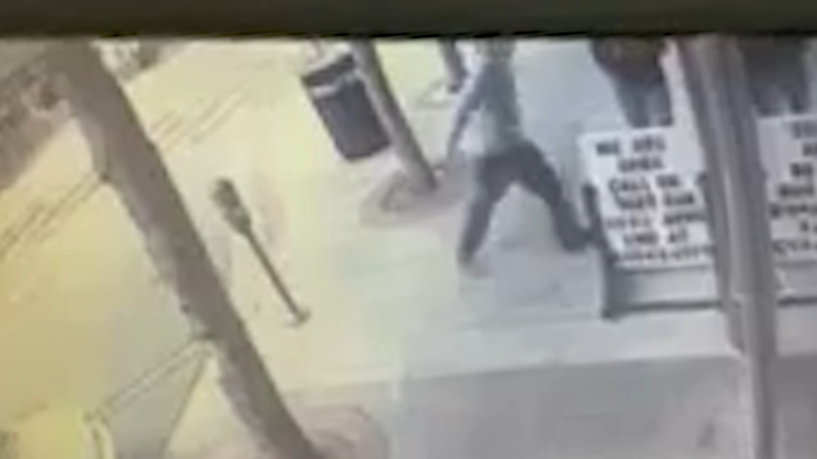 The man can then be seen on surveillance video walking calmly away.
