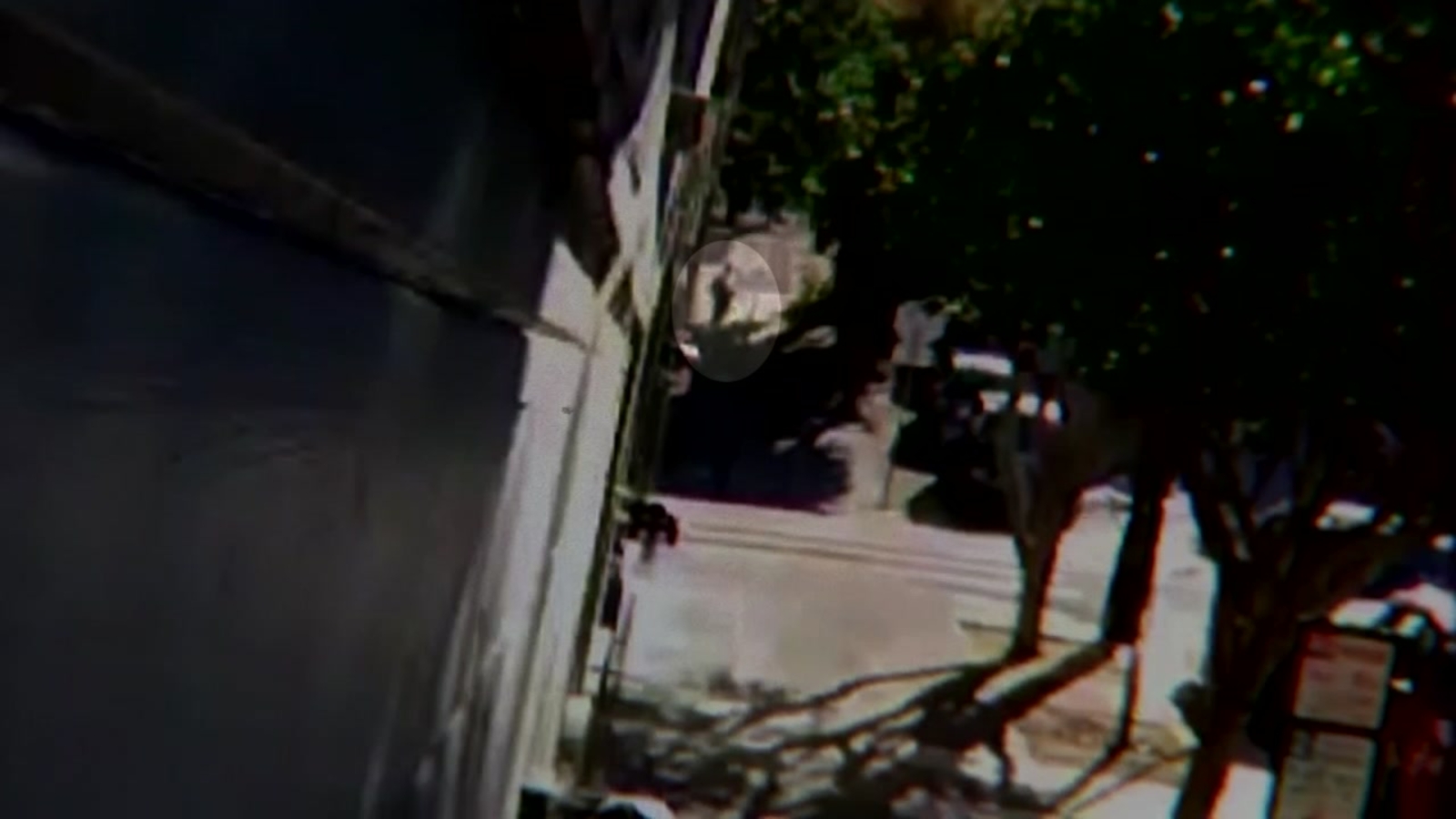 In the surveillance video, after the mother crosses the street, you can see a person in dark clothing carrying something, moving quickly down the street and around the corner. Ten seconds later, when you hear the mother scream, you can see another person running up the hill.