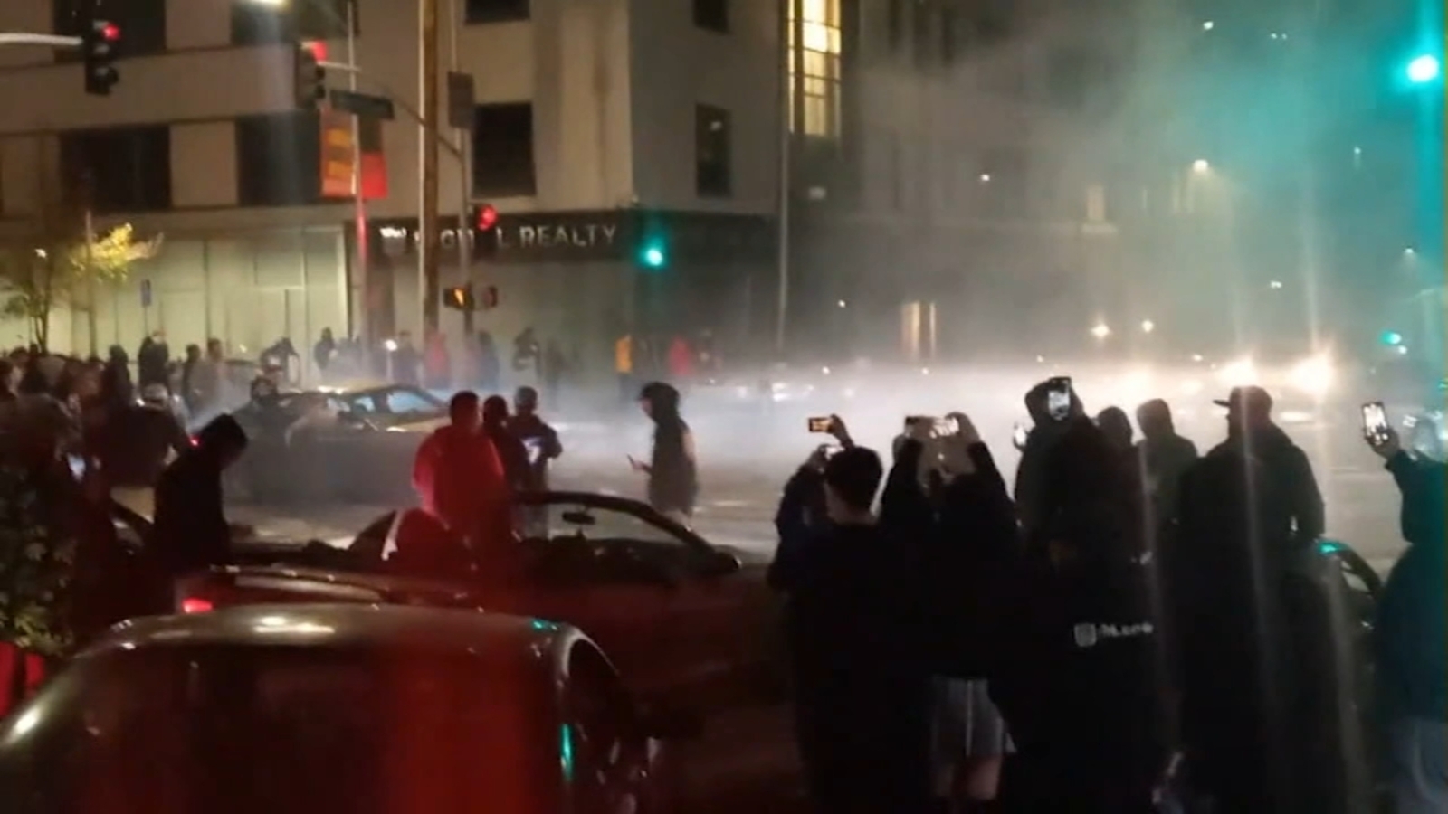 WATCH: Video shows cars spinning during San Francisco sideshow, blocking entrance of Bay Bridge