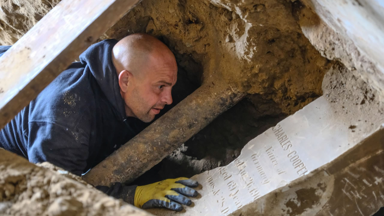 Work resumed Wednesday around the remnant from the lives of Charles Cooper, his wife Catherine Ryan, and their baby William Henry -- who died at 13 days old in 1862.