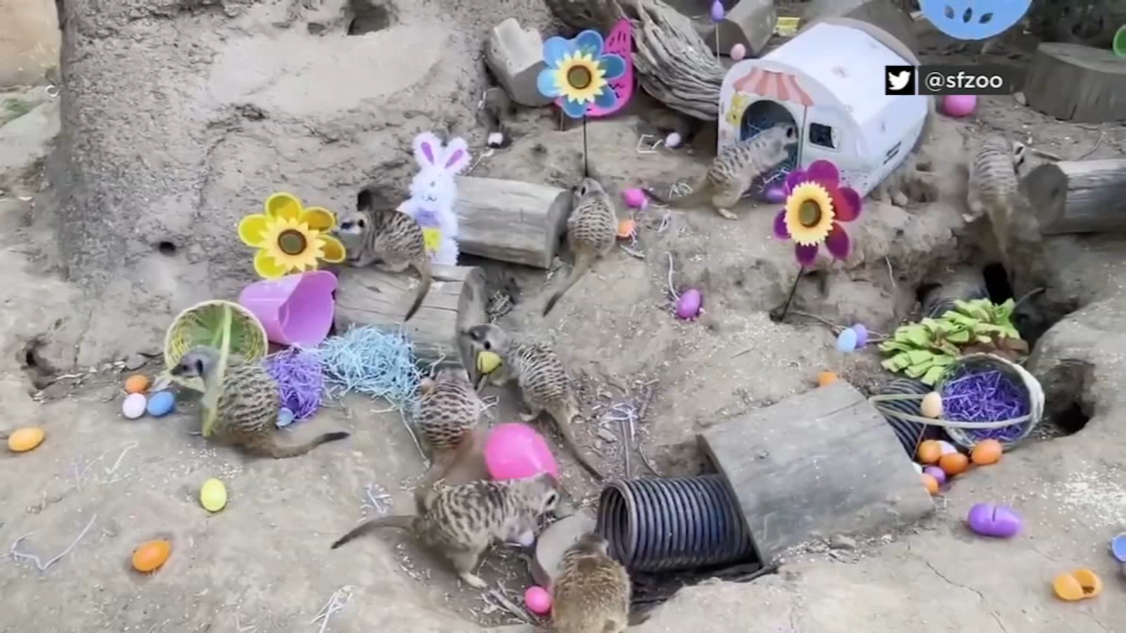 The video posted above shows meerkats on an elaborate egg hunt.