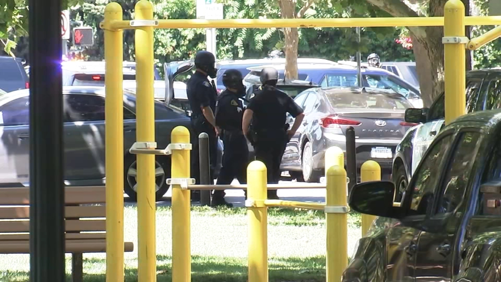 In the hour before SJPD announced that a suspect was in custody, a series of flash bangs rang out in the neighborhood and shortly after, officers were seen taking a man from one of the homes.