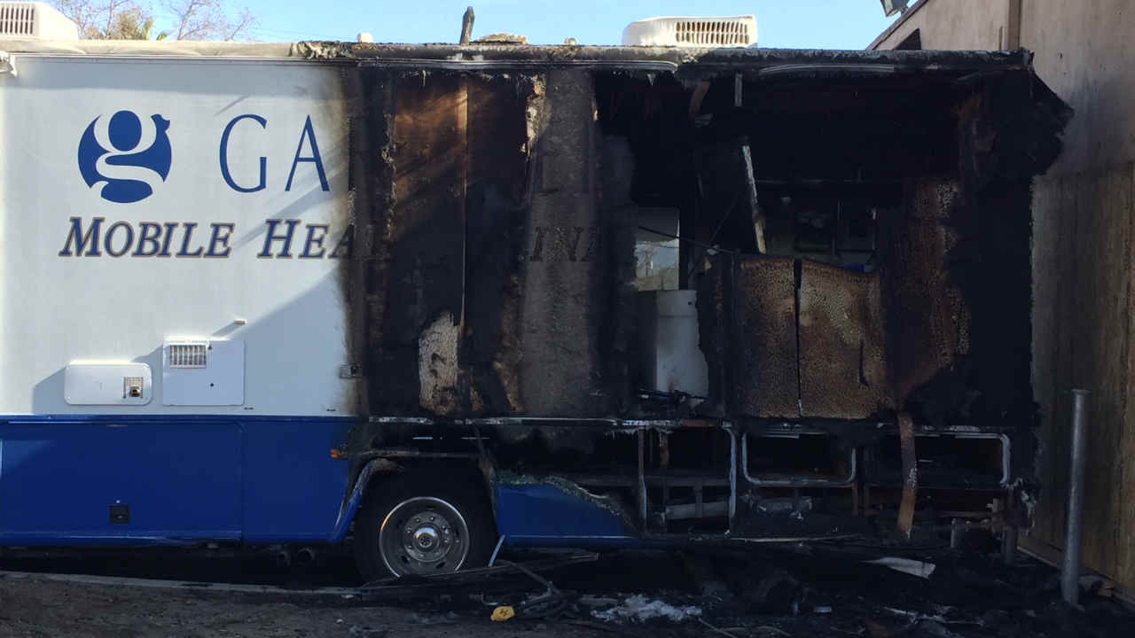 SAN JOSE, Calif. (KGO) -- A suspicious fire destroyed a large mobile health unit in San Jose, creating a setback for services to low-income and homeless residents. The fire broke out around 7 a.m. Sunday in the back of the Gardner Family Health facility on E. Virginia St., which owns and operates the unit.