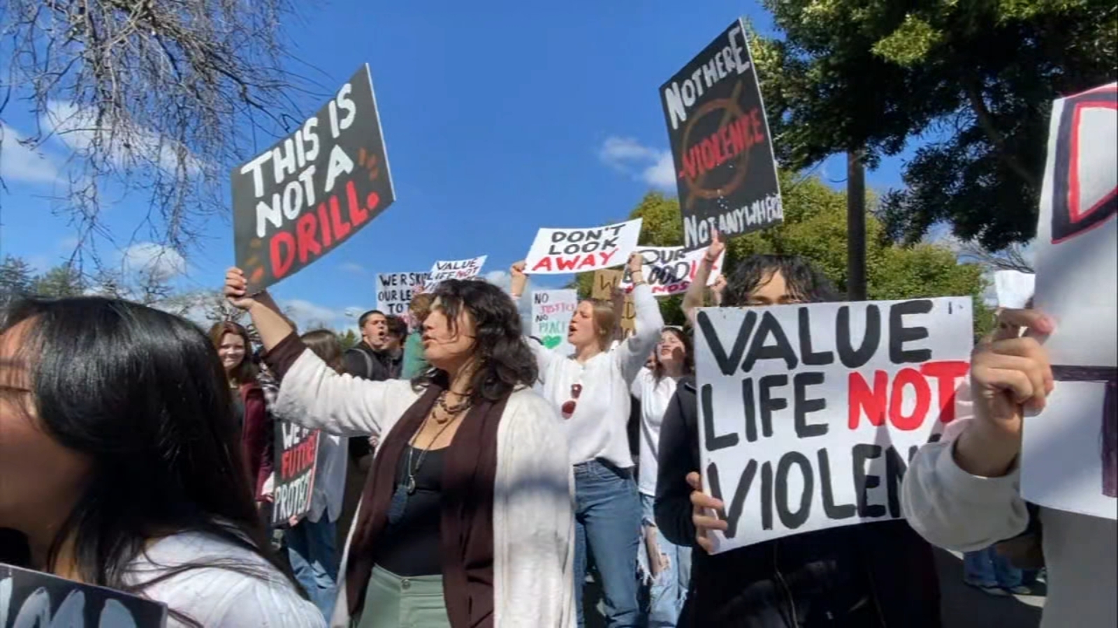 Earlier in the day, students walked out of classes, speaking out against campus violence and demanding more safety in schools.