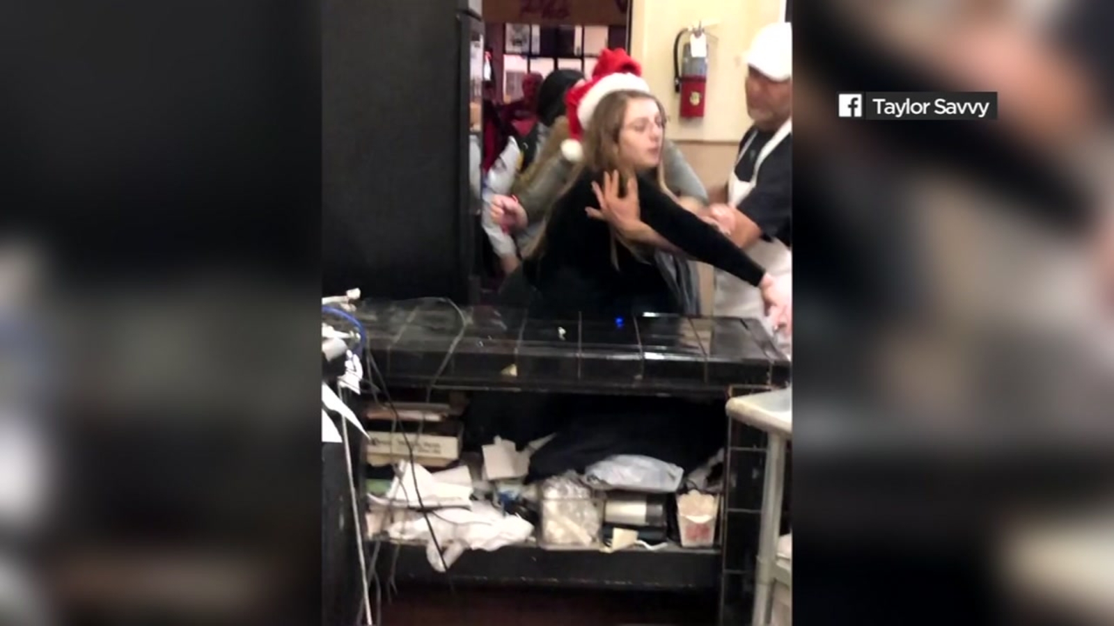 There is also video of the woman she was with throwing a sugar jar at an employee. Police say she also punched an employee.