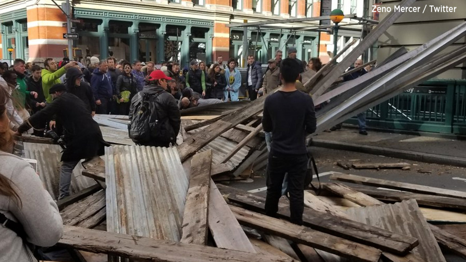 FDNY officials said we're "absolutely" lucky there aren't more injured in this busy neighborhood. The scaffolding collapsed over a subway entrance, but thankfully no train had let out at the time.