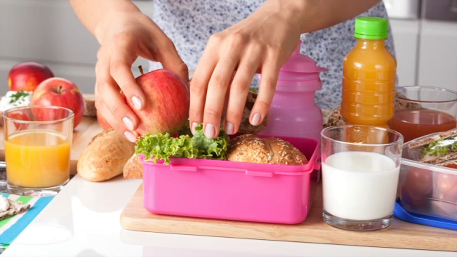 She advises parents to stick to buying things that are easy to open. So, instead of a juice box, she said to try a press-and-go or Flip Kid water container.