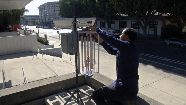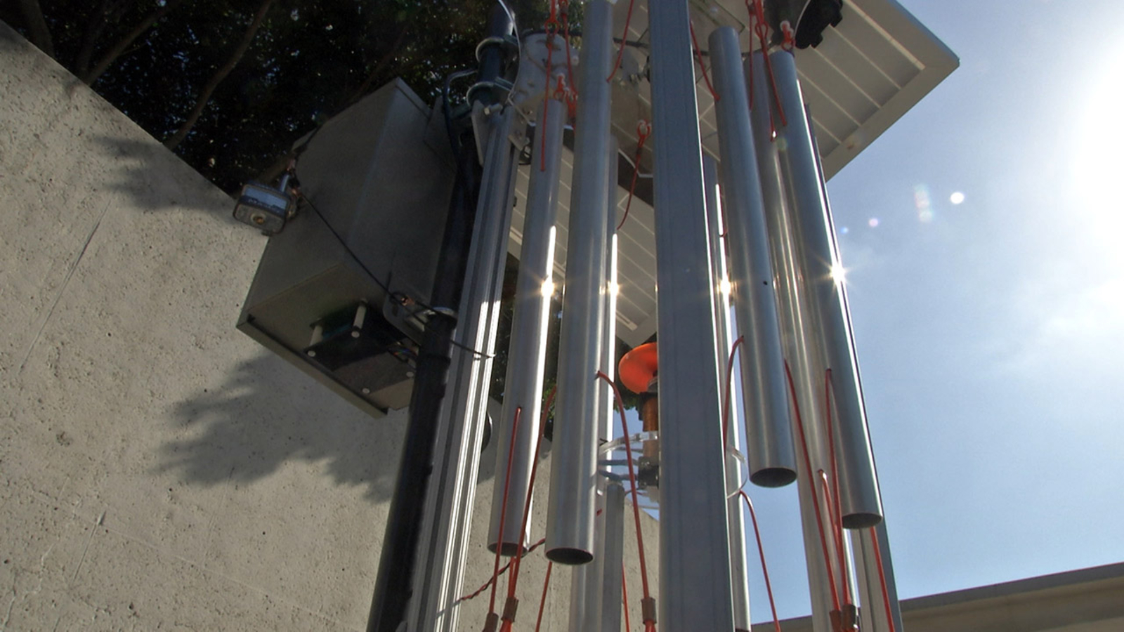 "There are two registers," said Woo as he fine tuned the bell he installed outside the Oakland Museum of California. " One is tracking global carbon dioxide. It's also tracking particulate matter in the very local environment."