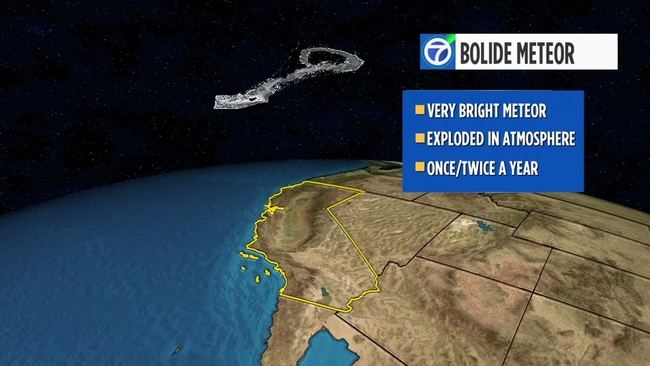 KABC, our sister station in Southern California, reports the director of the Griffith Observatory, Dr. Edwin Krupp, confirmed the light was a bolide meteor that entered the Earth's atmosphere. Krupp said the meteor can likely fit in your hand but what people saw was the compressed air around it.