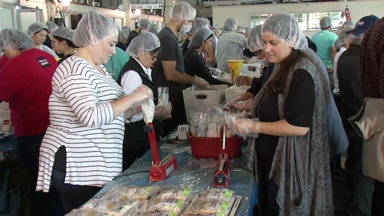 Congresswoman Nancy Pelosi got to work with other volunteers packing boxes of breakfast foods - enough for 300,000 meals. "We'll never forget, but how do you remember? You remember with service and with helping others," Pelosi said.