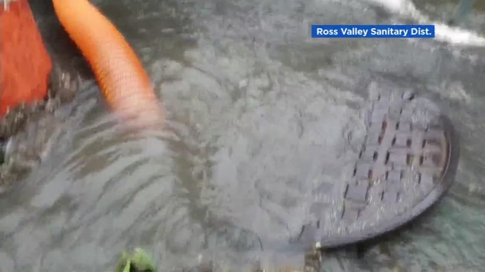SAN ANSELMO, Calif. (KGO) -- Crews from the Ross Valley Sanitary District say a tremendous amount of water was coming out of one of their sewer lines during Sunday's downpour.