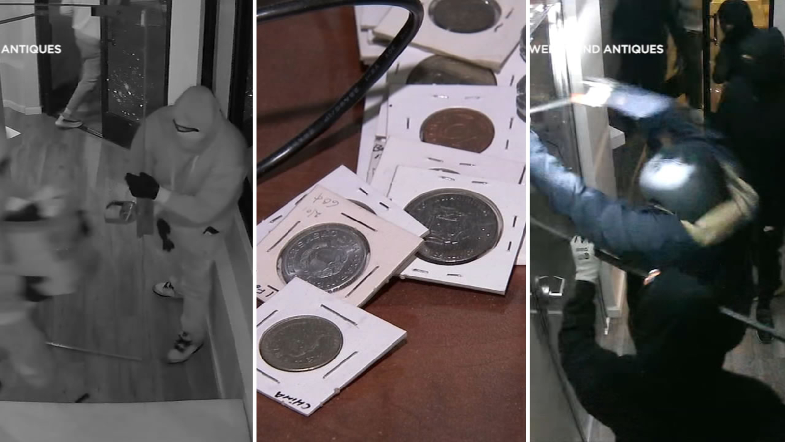 SAN FRANCISCO (KGO) -- Owners of a small, independently owned coin and antique shop in San Francisco are picking up the pieces after becoming victim to a brazen burglary involving multiple suspects early Monday morning. The owners are sharing the stunning surveillance in hopes of identifying the suspects - and so this kind of crime doesn't happen to anyone else.