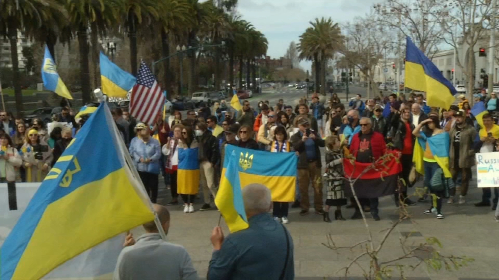 SAN FRANCISCO (KGO) -- With tensions continuing to rise in Ukraine, some 6,000 miles away along San Francisco's Embarcadero, dozens showed up in front of the ferry building to show their support for the Eastern European nation.