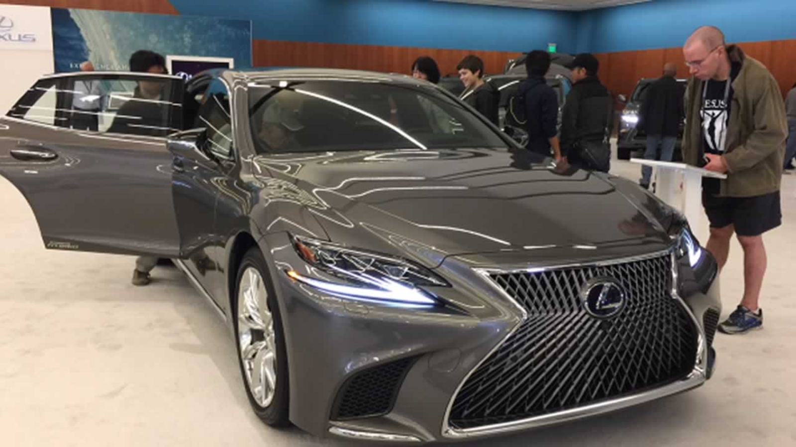 Toyota's representative says his company has 23 vehicles on display with the highest trim levels. A Camry with a "cockpit red" interior and pearl exterior was drawing a lot of attention. It has the full suite of cutting-edge safety features.