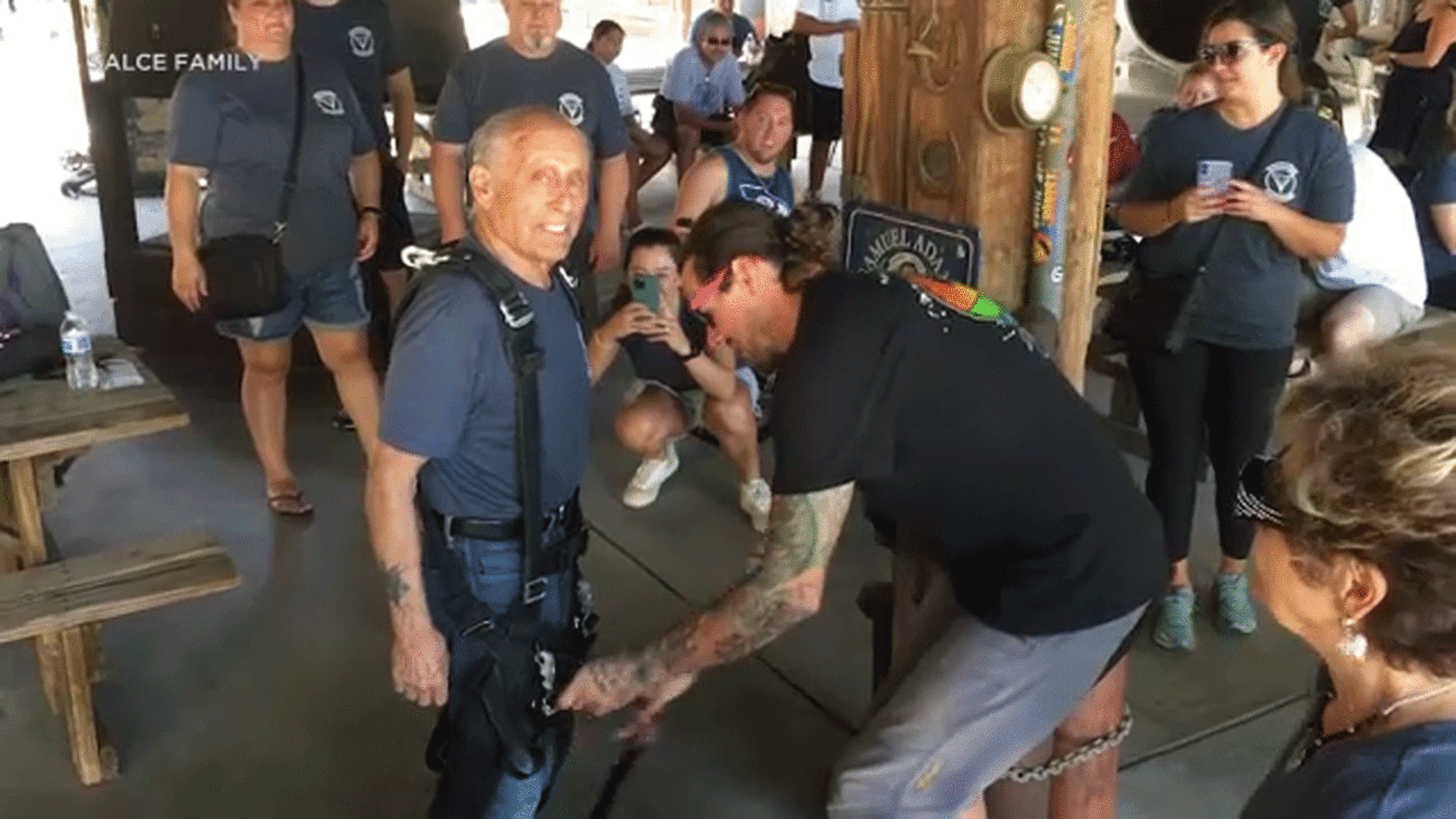 Vincent Salce jumped out of a plane for the first time Sunday morning in Lake Elsinore. He did it along with 16 family members, including his sons, grandchildren, nieces and nephews.