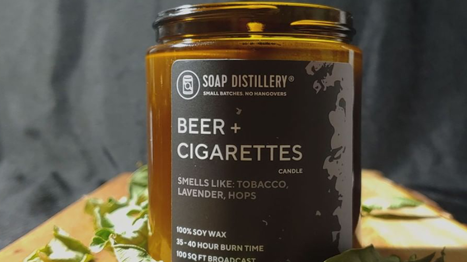 "The Beer + Cigarettes scent is a complex, but also very simple scent: the scent of tobacco blended with hops, and then we blend that with lavender and oak moss," said founder Danielle Martin. "Its kind of a funny play on ingredients, but it doesn't smell like beer and cigarettes. Like it smells good, I promise."