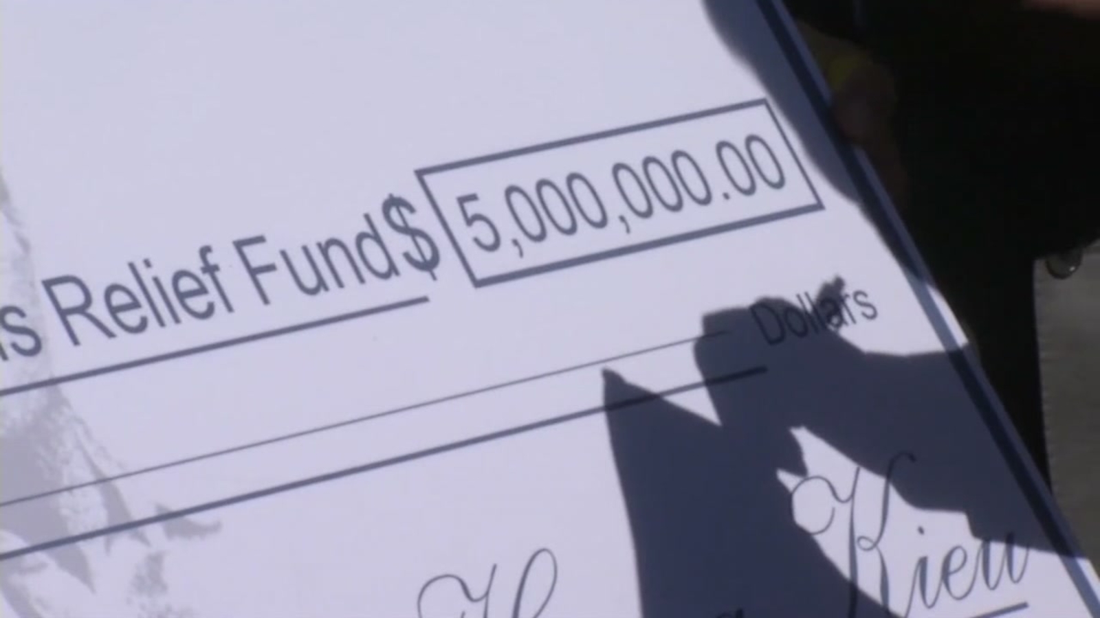 A housing department official told ABC7 News $800,000 of the donation will go to Sacred Heart Community Service by the end of the week and should be in the hands of individual flood victims by next week.