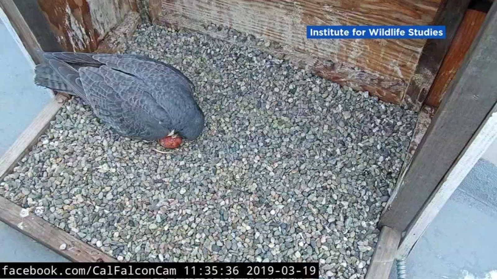 BERKELEY, Calif. (KGO) -- More have arrived! At around 3:15pm on Friday, the mother peregrine falcon at UC Berkeley laid two more eggs!