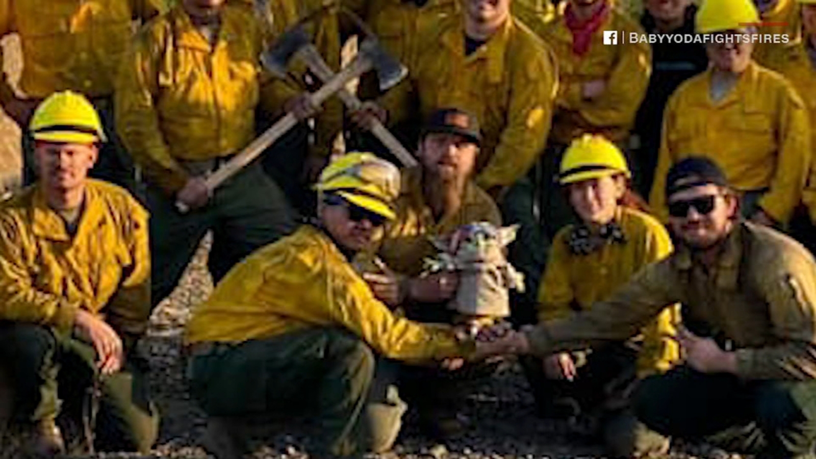 It was a gift that the heroic responders sure loved. Baby Yoda is now force-fighting fires with crews on the front lines.