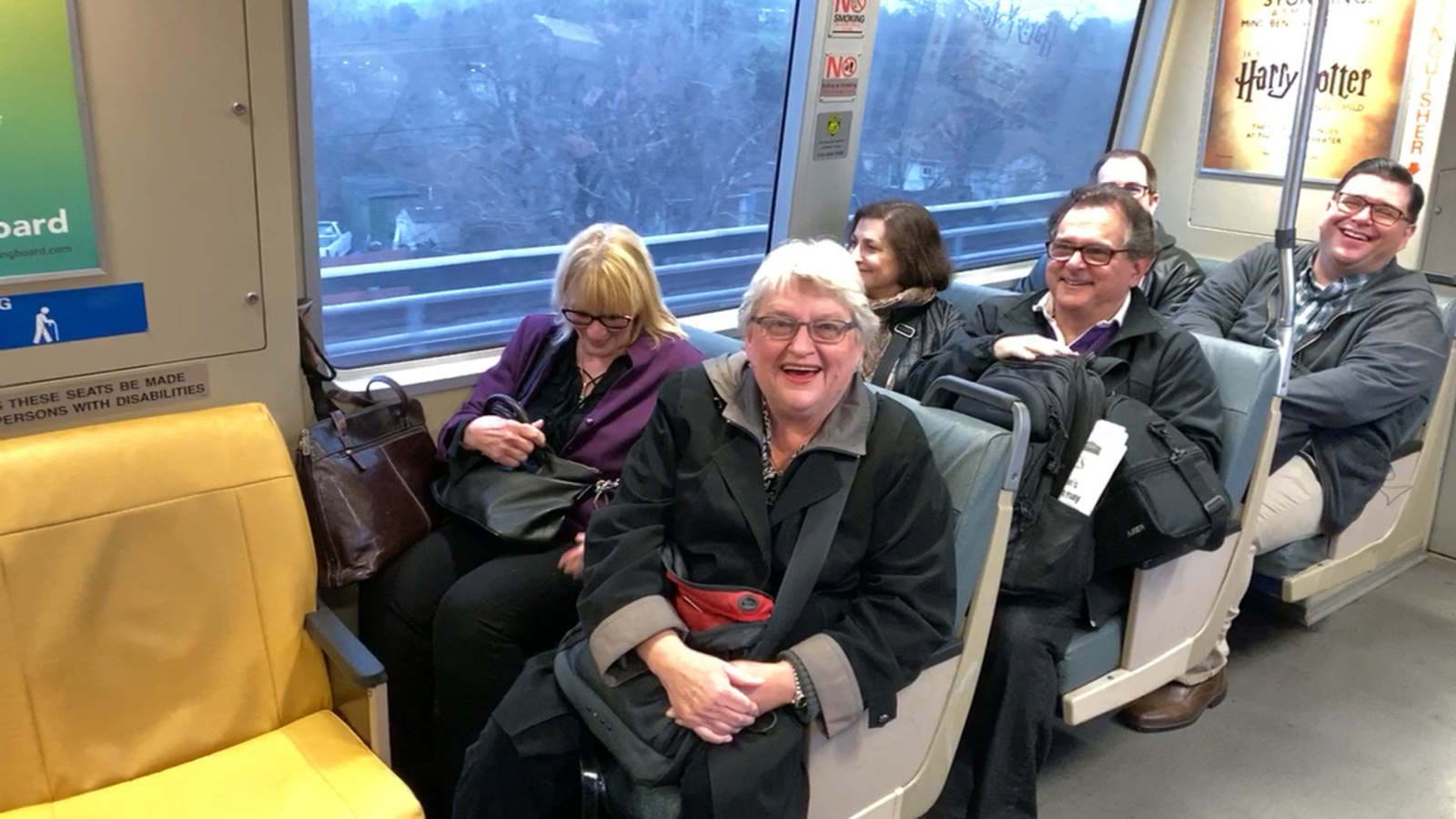 Finding seats together takes some maneuvering. They don't take the first San Francisco-bound train that passes by. They wait for that usually has more empty seats so they can sit nearby, preferably in a quartet, with seats facing each other. Then the conversation begins.