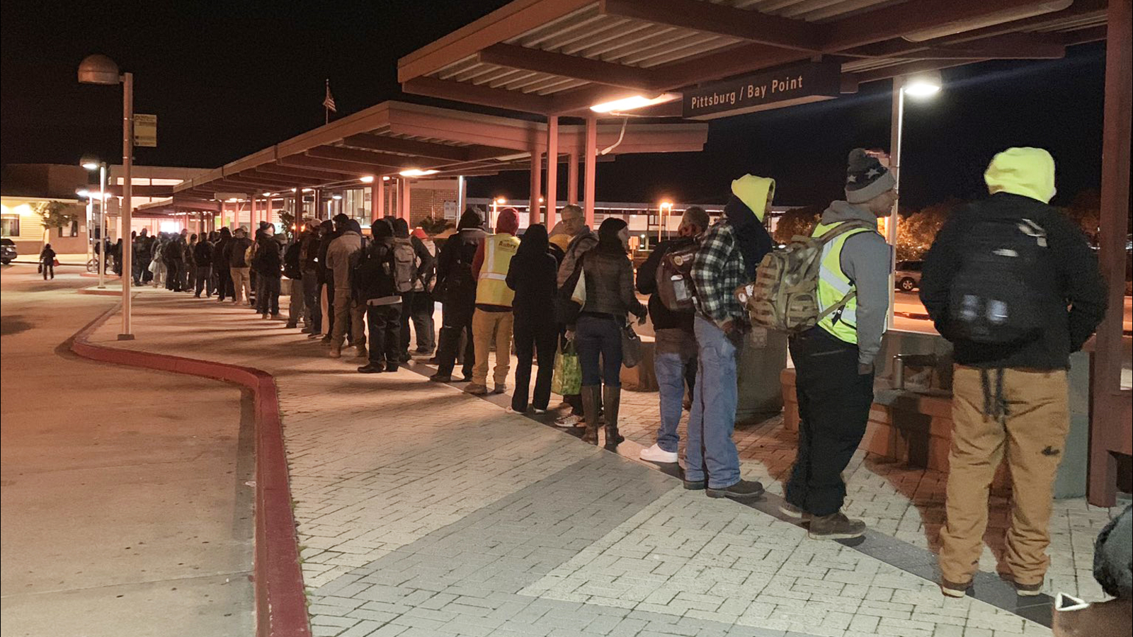 A long line was seen outside of the Antioch and Pittsburg/Bay Point BART stations early Monday morning.
