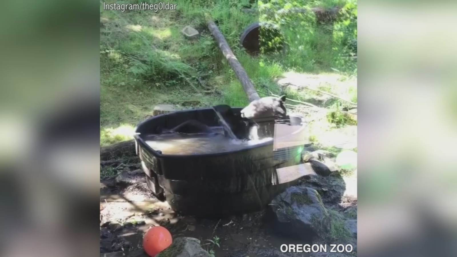 PORTLAND, Ore. -- A black bear found a cute way to beat the heat this weekend at the Oregon Zoo.
