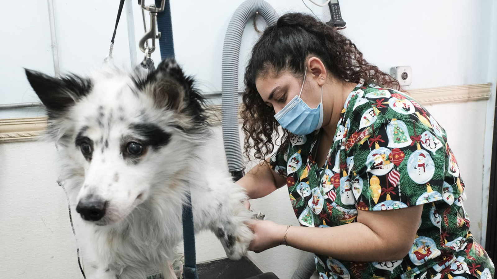 With that, she resumed her work on a shaggy 16 year-old-dog named Doyle, who needed his nails trimmed.