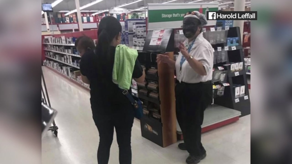 The office supply giant issued a statement reading: "Staples apologizes to any customers that were offended in the store, as well as those that may have viewed a photo of the representative on social media."