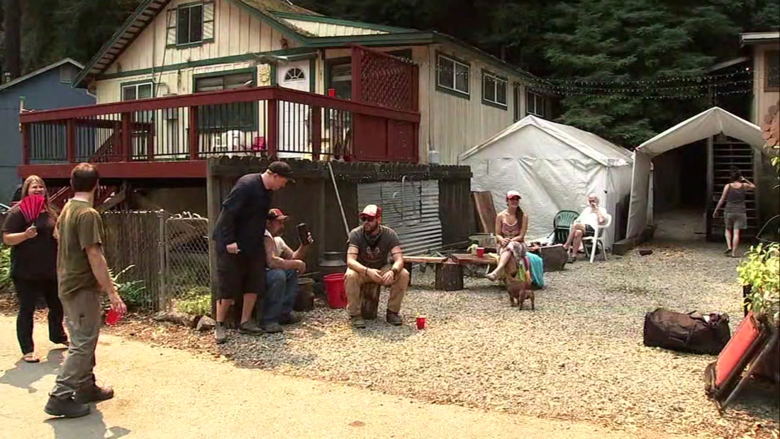 "Fire, flood, fire, flood, pandemic, fire, here we are....Ha Ha," laughed DeeDee Partridge. We found her along with family and friends in the redwoods of Rio Nido.