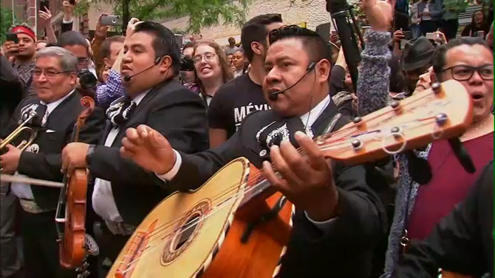 UPPER WEST SIDE, Manhattan -- A mariachi band has performed songs including "La Cucaracha" during a protest in front of the apartment of a New York City lawyer caught on video ranting against Spanish-speaking workers.