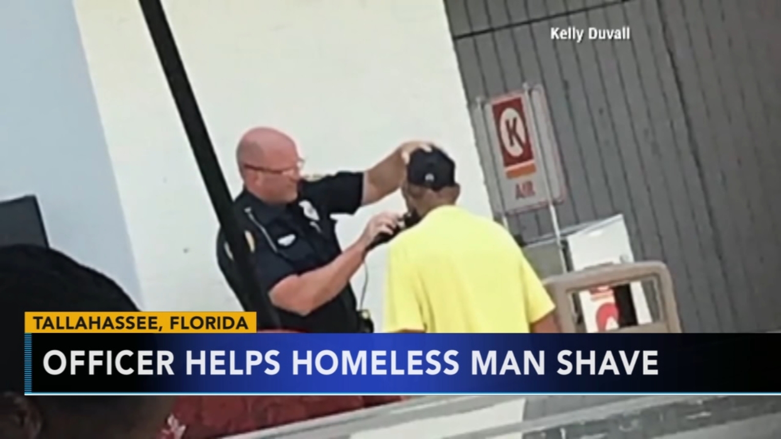 Officer Tony Carlson spotted a homeless man struggling to shave.