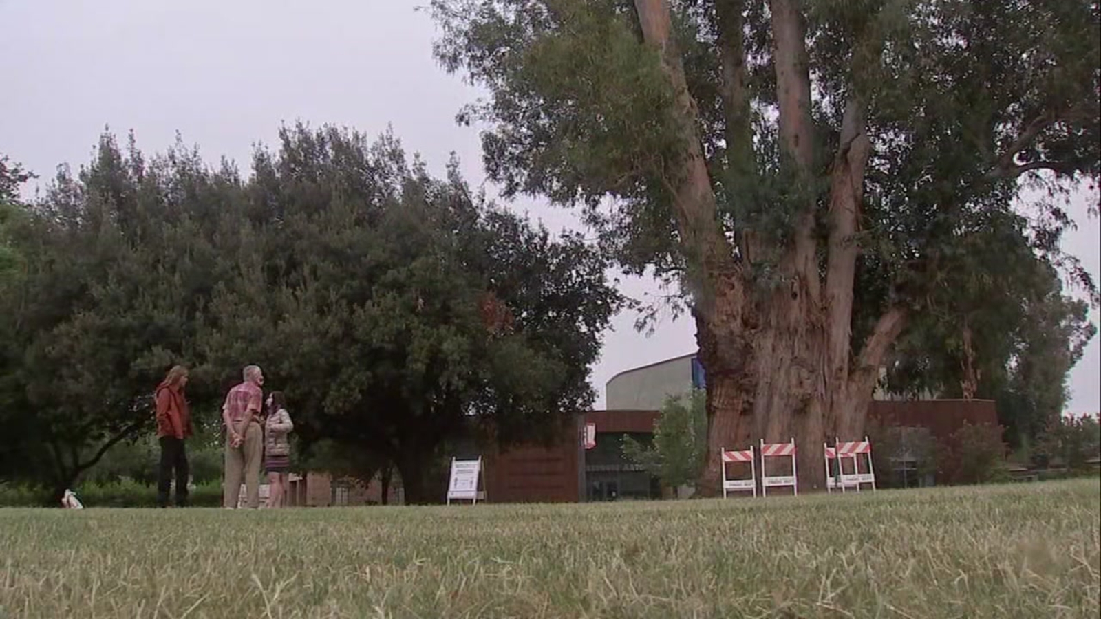 PLEASANTON, Calif. (KGO) -- Five protestors showed up Tuesday morning at Lions Wayside Park in Pleasanton to try and block the removal of a eucalyptus tree, thought to be the oldest and largest one in the city.