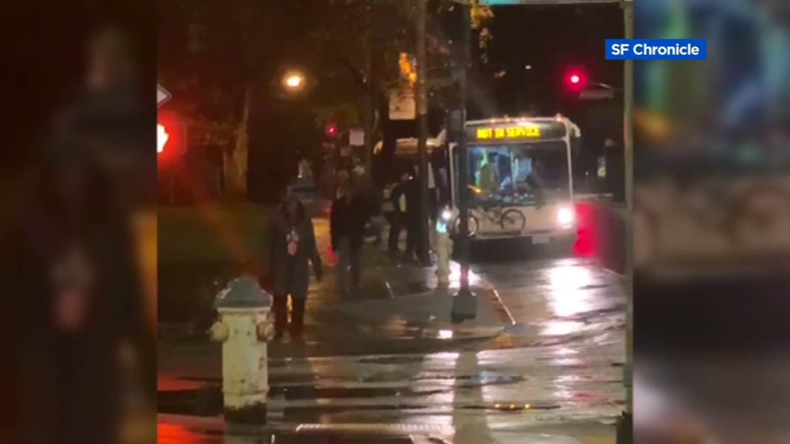 Security guards captured video of it happening at Washington and Drumm in San Francisco. The bus comes to the end of the line and then the driver tells everyone to get out. The security guards said they saw several homeless people get off the bus and disappear into the darkness.
